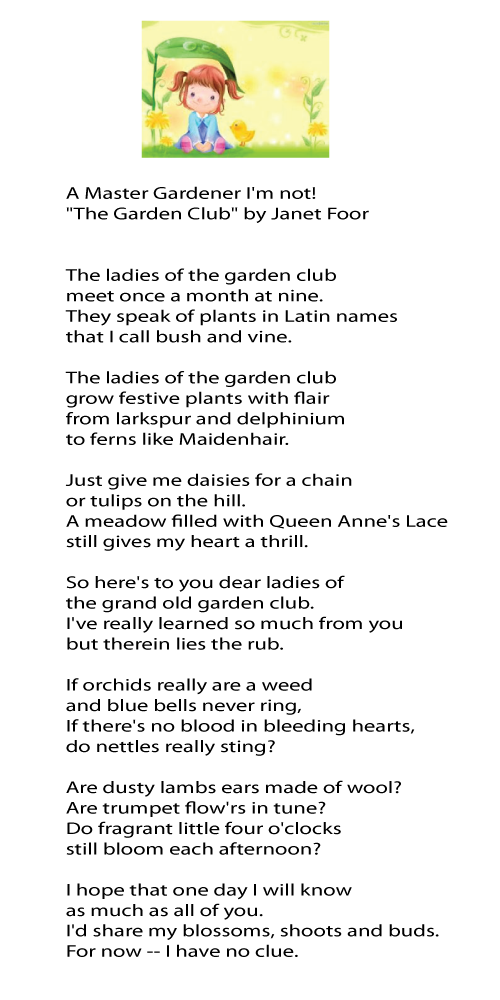 Members, Members Share, Tips and Favorites “The Garden Club” by Janet Foor 10/14/2014 The Garden Club of Weaverville Share this: Click to email a link to a friend (Opens in new window) Email Click to share on Facebook (Opens in new window) Facebook Click to share on Pinterest (Opens in new window) Pinterest More Click to share on X (Opens in new window) X Click to print (Opens in new window) Print